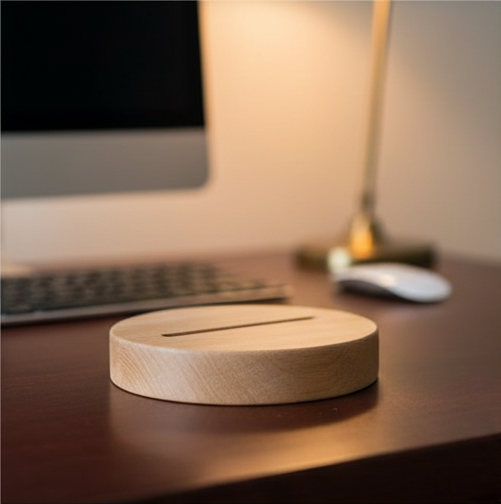 This 4-inch wooden LED base is crafted with premium-quality wood and designed to beautifully illuminate acrylic plates, awards, name displays, and décor pieces. Its warm LED lighting creates an elegant glow, making it ideal for gifting, branding, and custom creations. Durable, compact, and stylish—perfect for both personal and commercial use.